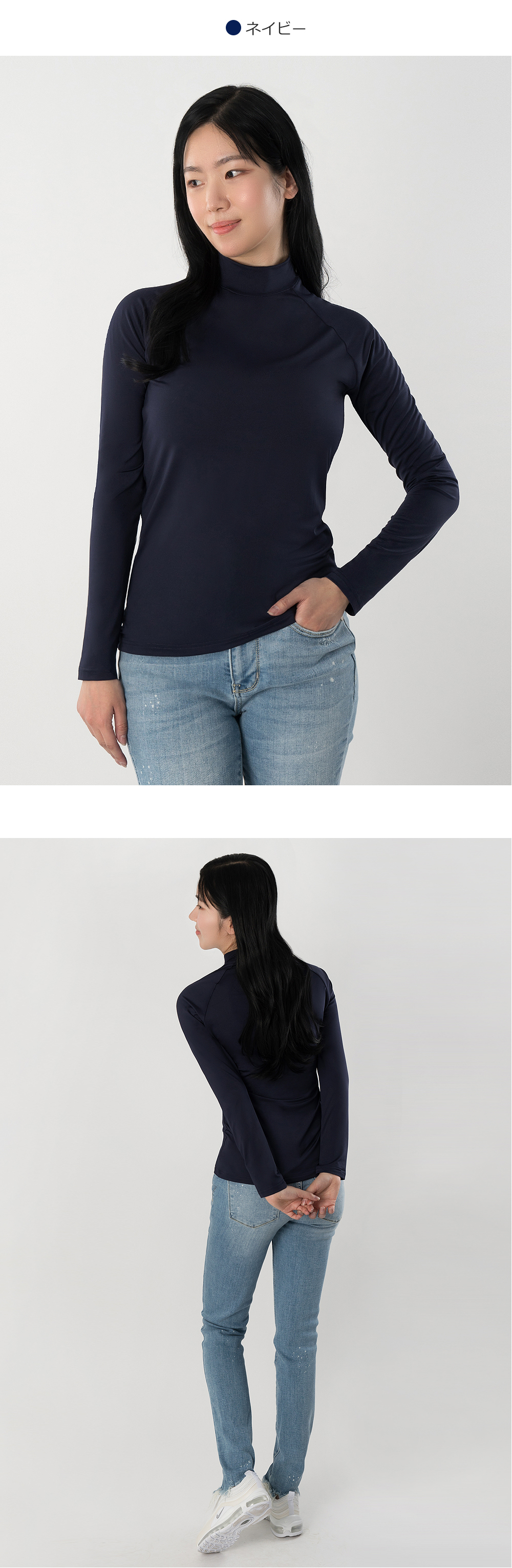 窮屈感のないタートルネックが首元をしっかりカバーします。
