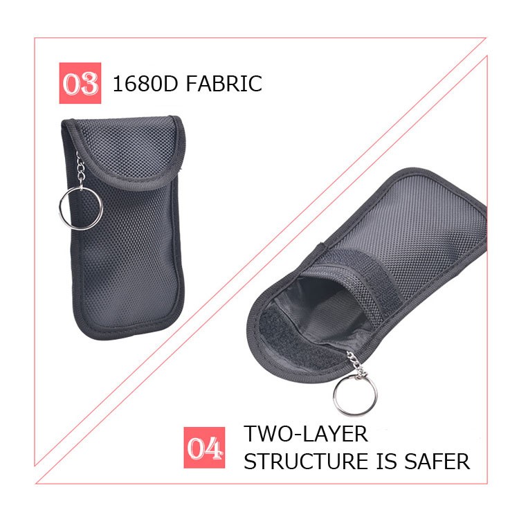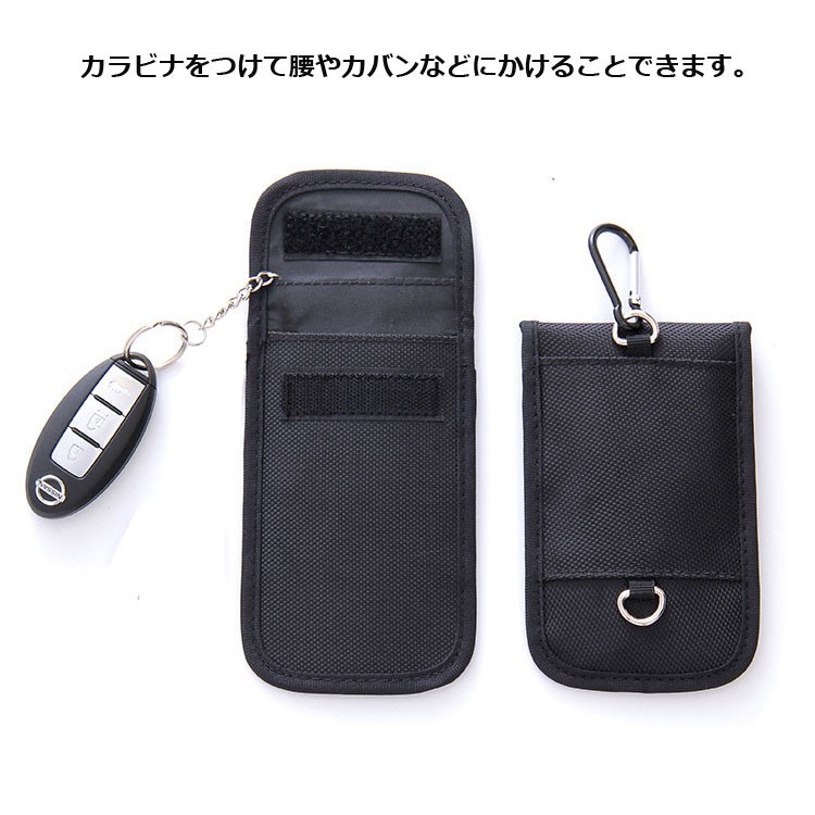 ・電波遮断の生地が使われている側のポケットにスマートキーを入れてください。