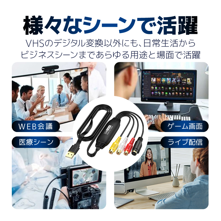 VHSだけでなく、リモート会議やゲーム画面、ライブ配信、医療機器など幅広いシーンで活躍します。
