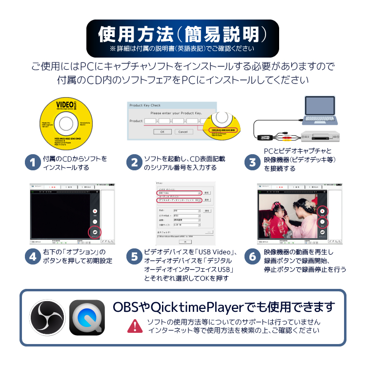 セット内容:ビデオキャプチャ本体、ソフトウェアディスク、英語説明書