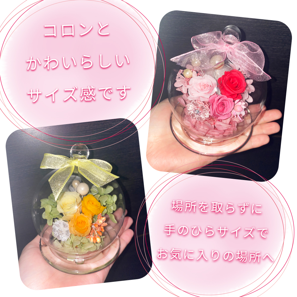 ・生花を保存加工してます自然の物なのでプリザーブドフラワーの花びら割れなどもございます。