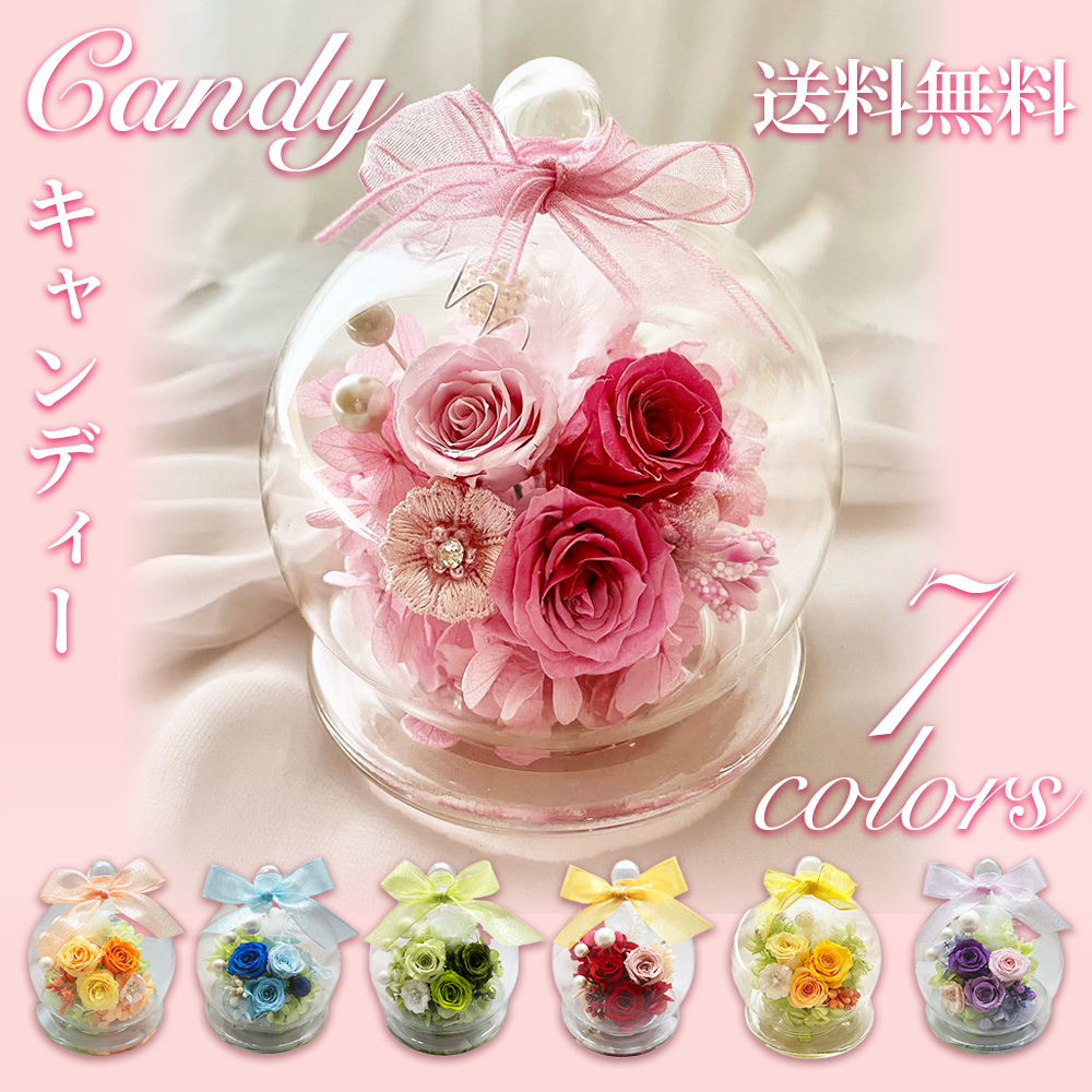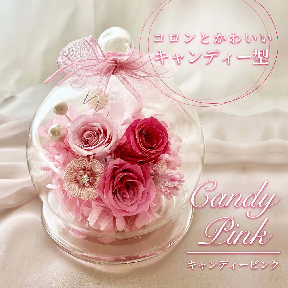 母の日 遅れてごめんね ギフト 「キャンディー」 ガラスドーム フラデコ プリザーブドフラワー 可愛い プレゼント
