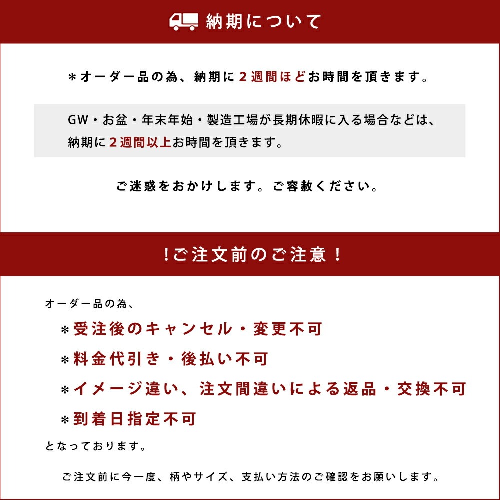 ●納期が2週間ほど(土日を挟むなど場合によっては更にかかる場合もございます)