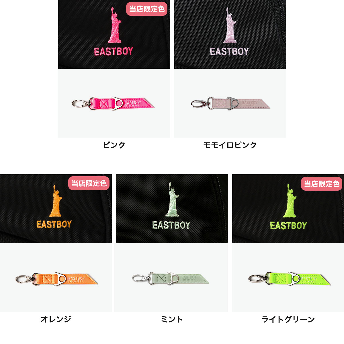 ピンク(15)、モモイロピンク(14)、オレンジ(33)、ミント(54)、ライトグリーン(51)、クロベージュ(23)、イエロー(43)、サックス(64)、クロ(01)、ベージュ(25)、コン(60)