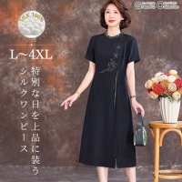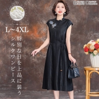 シルク100% 顔合わせ 服装 母親 60代 結婚式 ドレス50代 女性 叔母 フォーマルワンピース 食事会 お宮参り服装 祖母 70代 チャイナ風ドレス 夏 春154-0525-0222