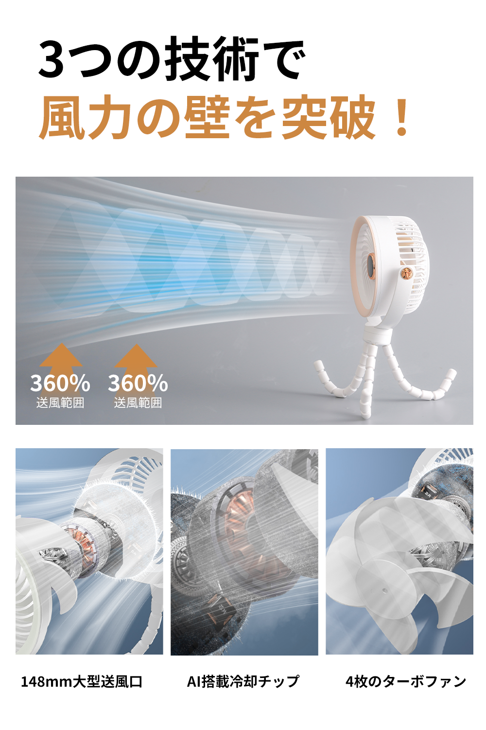 【148mm大型送風口&螺旋設計で広範囲送風】