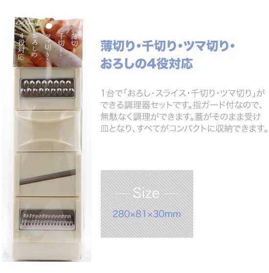 薄切り・千切り・ツマ切り・おろしの4役対応♪