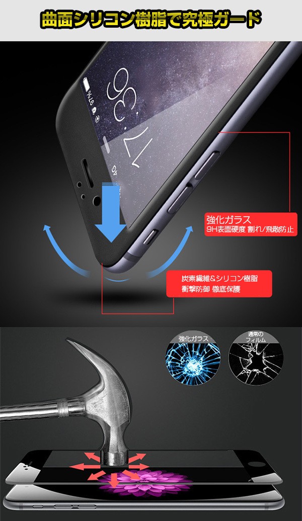 iphone8 ガラス保護フィルム iphone7 保護フィルム 曲面シリコン樹脂