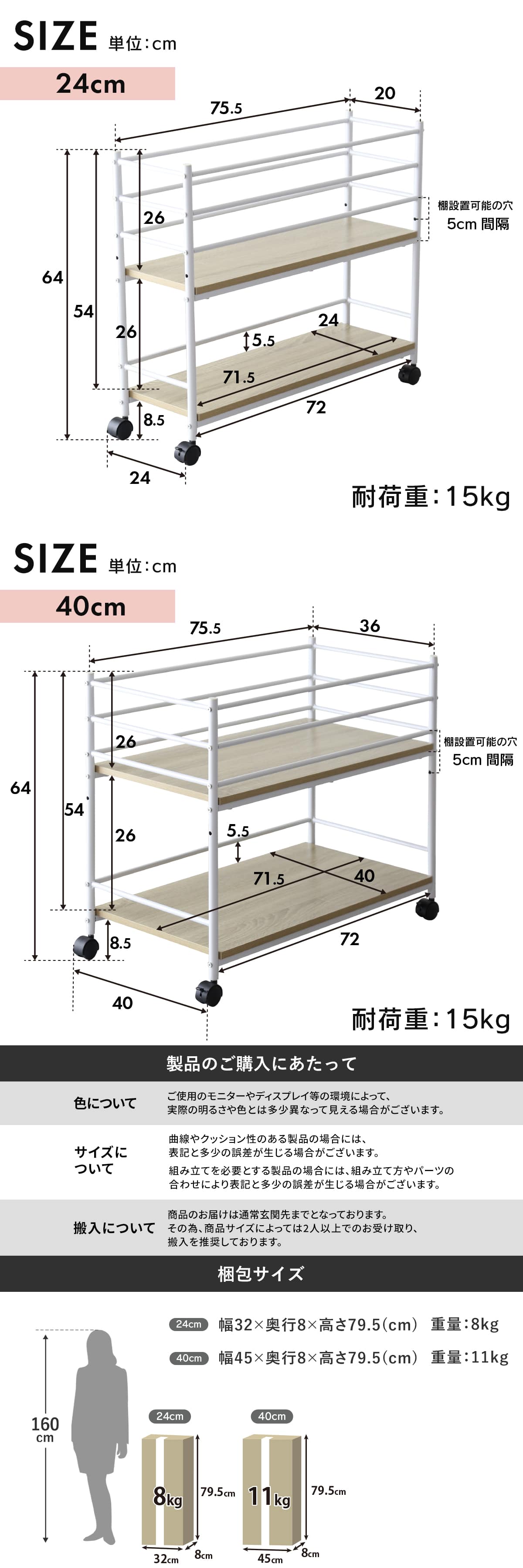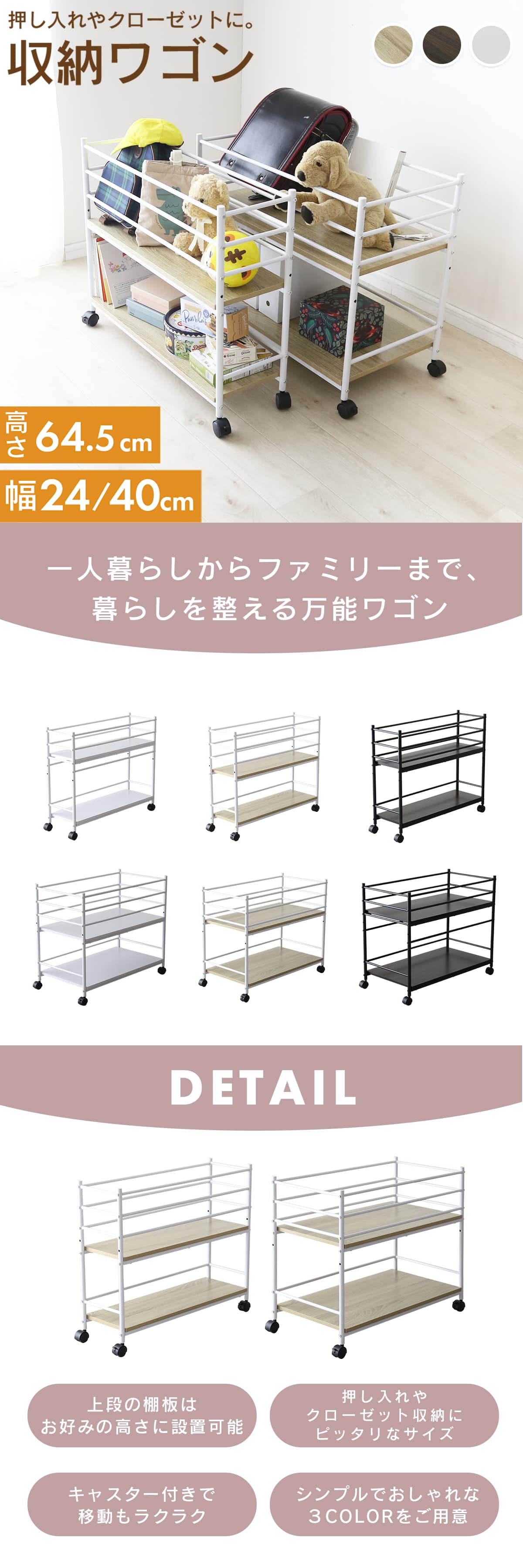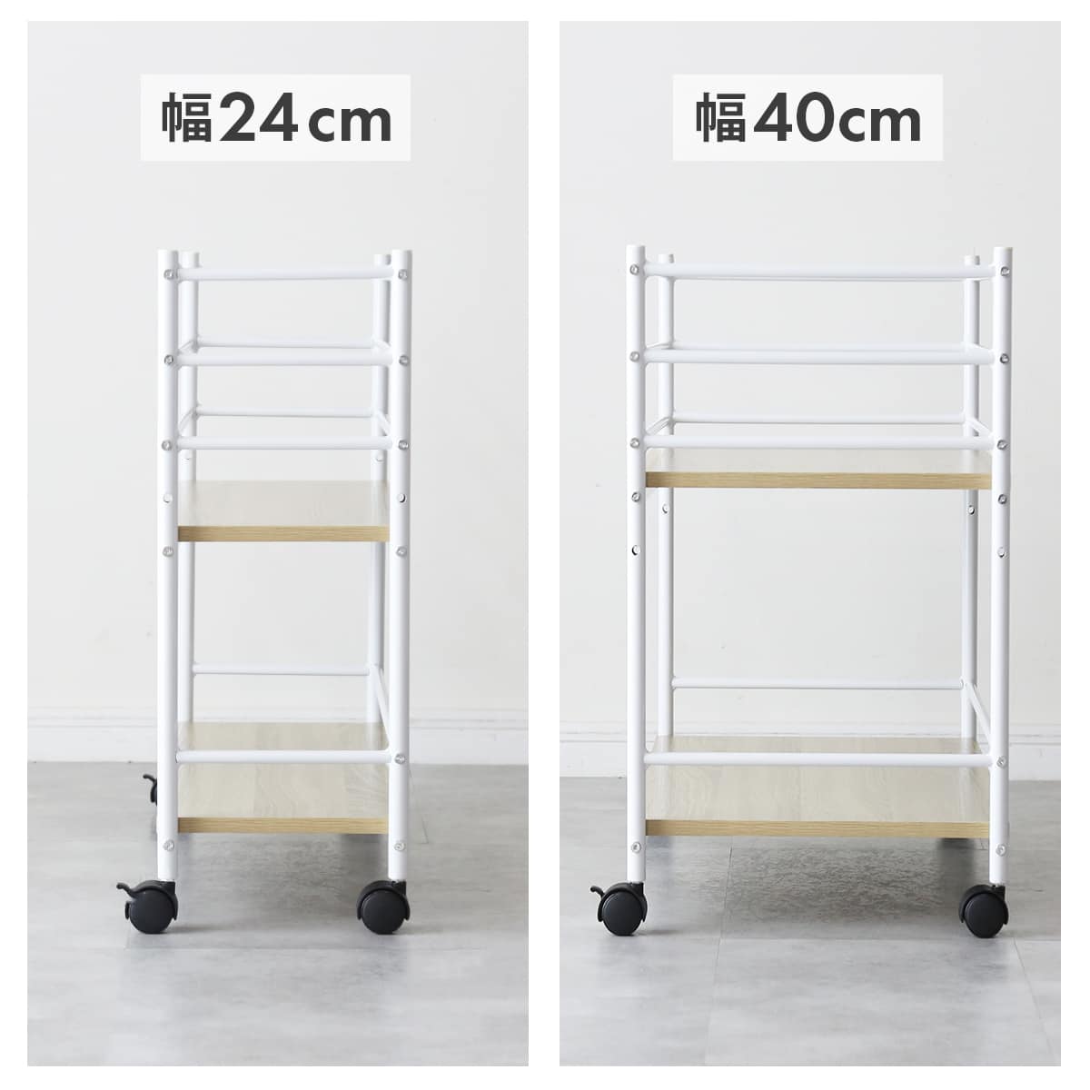 収納するものに合わせて棚板の位置を3段階で調整できる棚板を採用。子どものランドセルや教科書を収納したり、一人暮らし女子のファッション小物をディスプレイしたりと、使い方はあなた次第。リビングや寝室、洗面所、玄関など、どの部屋でも整理収納をサポートします。日常生活をよりスマートに、おしゃれに整える高さ調整可能ワゴンです。