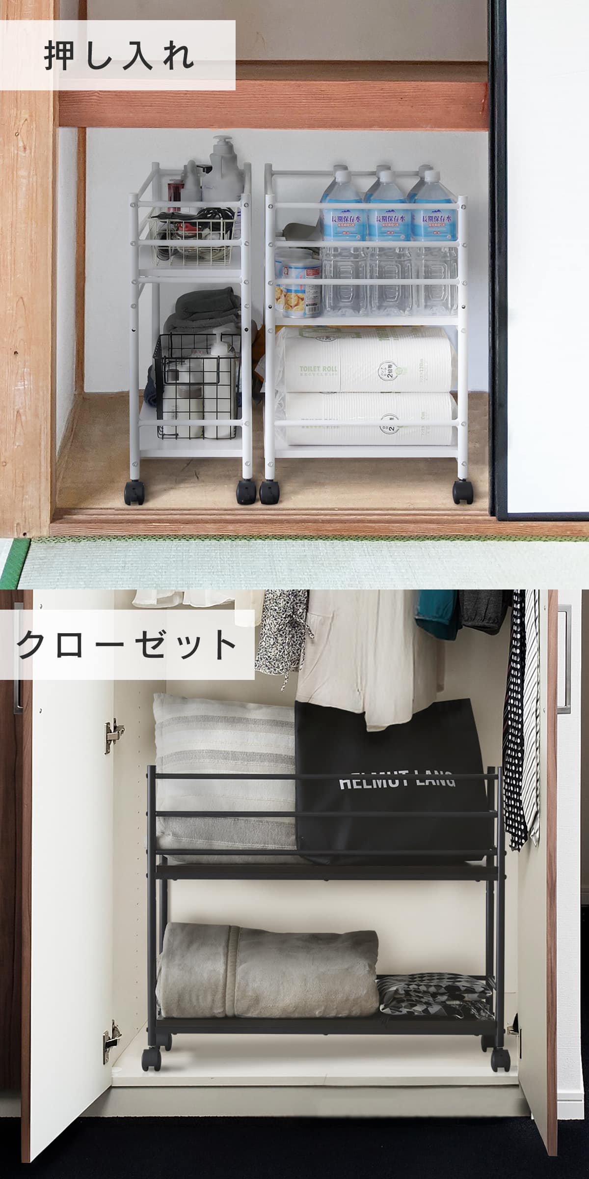 奥行や幅が計算された設計で、押入れやクローゼットの中にもスッキリ収まります。使わない時は隙間収納としても便利。賃貸インテリアにもぴったりのサイズ感で、狭い空間を最大限に活用できます。衣類や雑貨を整理して、おしゃれで快適な暮らしをサポートします。