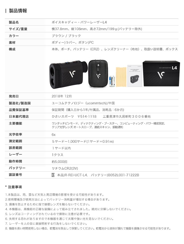 ボイスキャディ レーザー距離計 パワーレーザー L4