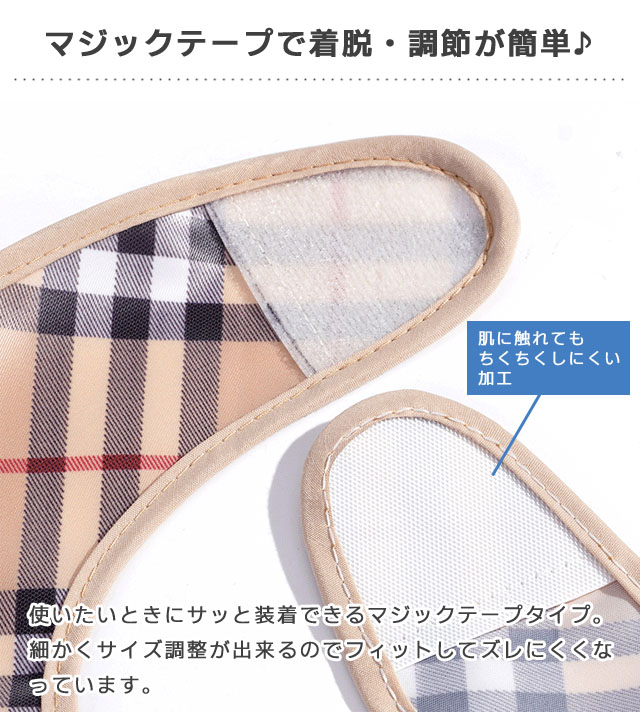 細かくサイズ調節が出来るマジックテープタイプなのでフィットしてズレにくくなっています。