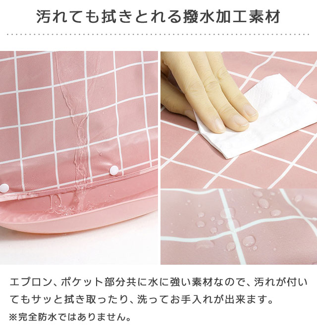 エプロン、ポケット共に水に強い素材なので、汚れが付いても拭き取ったり、洗ってお手入れが出来ます。