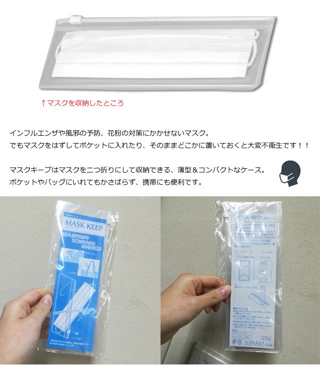 マスクキープはマスクを二つ折りにして収納・保管できる、薄型&コンパクトな簡易ケース。