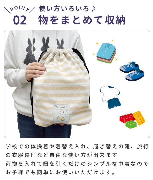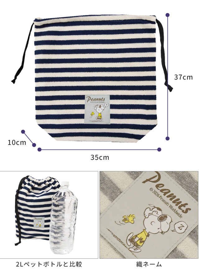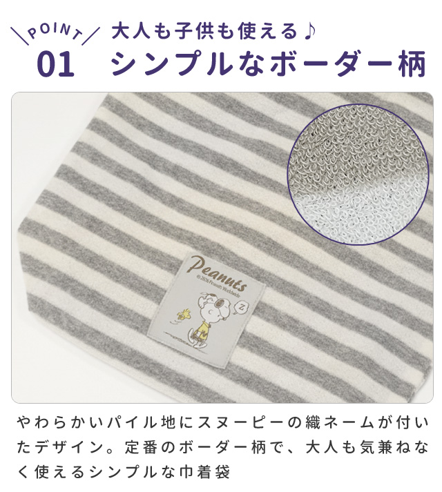 スヌーピー 巾着 巾着袋 キャラクター マチあり ボーダー 子供 大人 小学校 幼稚園 男の子 女の子 入学 入園 体操服 旅行 撥水 日本製 2点迄メール便OK(va1a481)