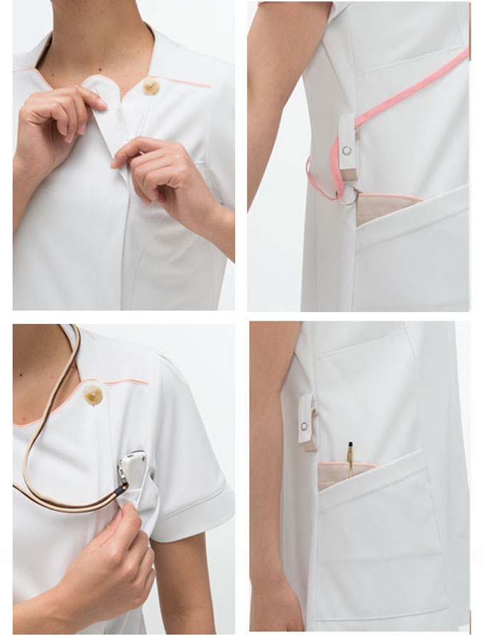 LX3732 ナガイレーベン 白衣 ナースウェア ジャケット チュニック 女性用 半袖 PHSポケット 涼感素材 制菌加工 制電 吸水 防汚