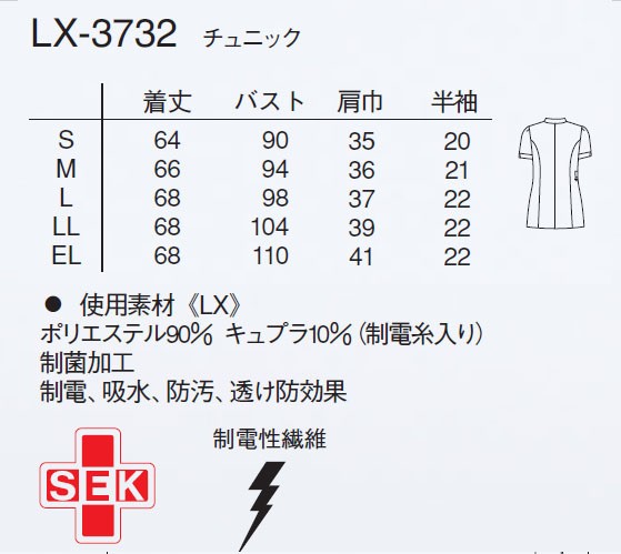 LX3732 ナガイレーベン ナースウェア ジャケット 女性用 半袖 PHSポケット 涼感素材 制菌加工 制電 吸水 防汚 透け防止 NAGAILEBEN 医療用 看護師 介護 歯科衛生士 レディース レディス 女子 チュニック 白衣ネット
