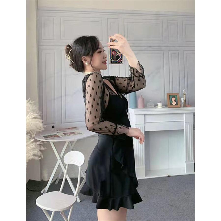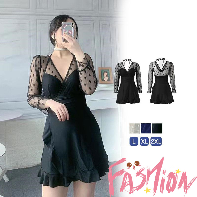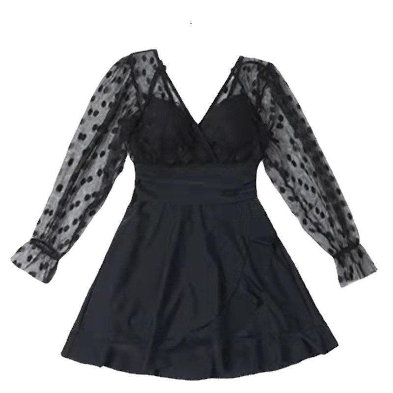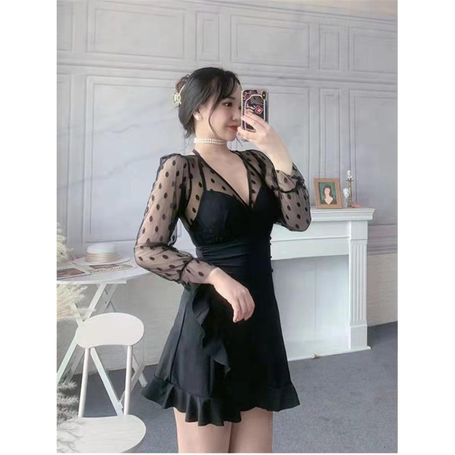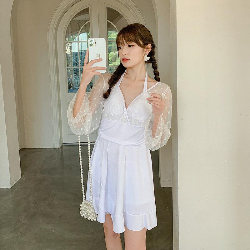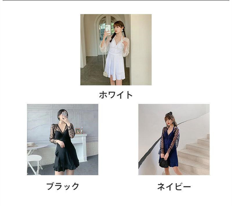 水着 レディース ワンピース レース 韓国風 体型カバー 水玉 可愛い 夏休み 女子 おしゃれ 着痩せ 長袖 ハイウエスト スイムウエア 送料無料