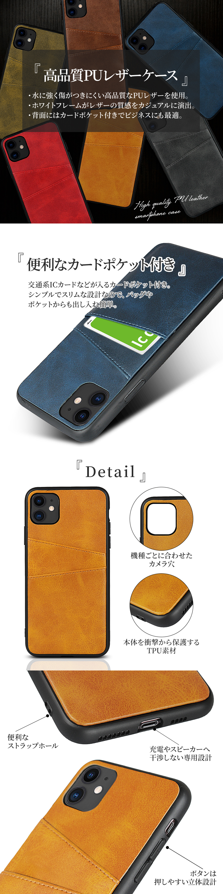 iPhone 11pro ケース PUレザー カード収納付き