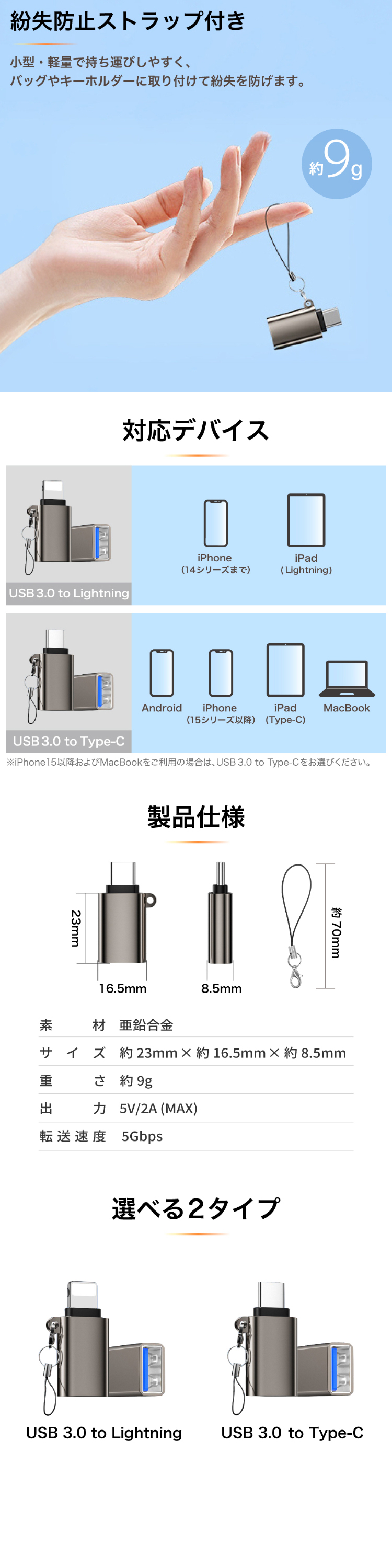 ※iPhone15以降およびMacBookをご利用の場合には、USB 3.0 to Type-Cをお選びください。