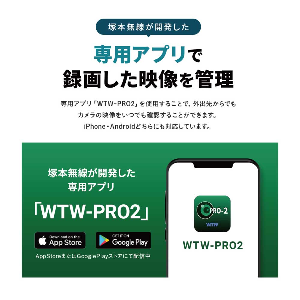 2.4GhzのWi-Fiルーターと接続を行いネット経由でスマートフォンで視聴できます。