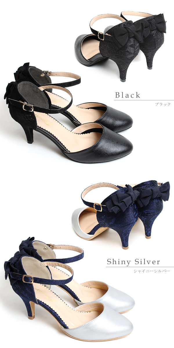 ●バックはリボン&レース仕立ての贅沢パンプス。