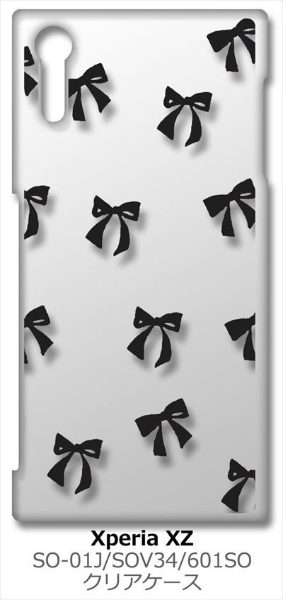 SO-01J/SOV34/601SO Xperia XZ クリア ハードケース リボン(ブラック) スマホ ケース スマートフォン カバー カスタム ジャケッ