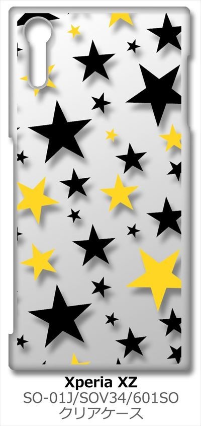 SO-01J/SOV34/601SO Xperia XZ クリア ハードケース 星柄(ブラック/イエロー) スター スマホ ケース スマートフォン カバー カ