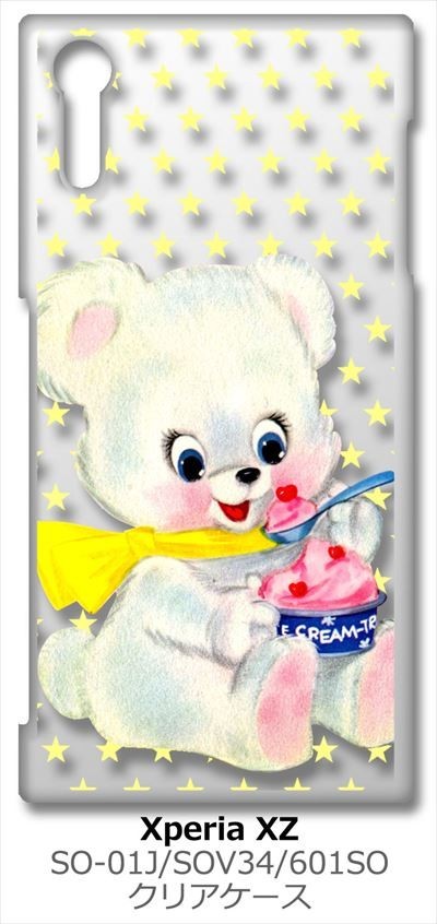 SO-01J/SOV34/601SO Xperia XZ クリア ハードケース テディベア(アイスクリーム) くま レトロ 星 スター ドット スマホ ケース