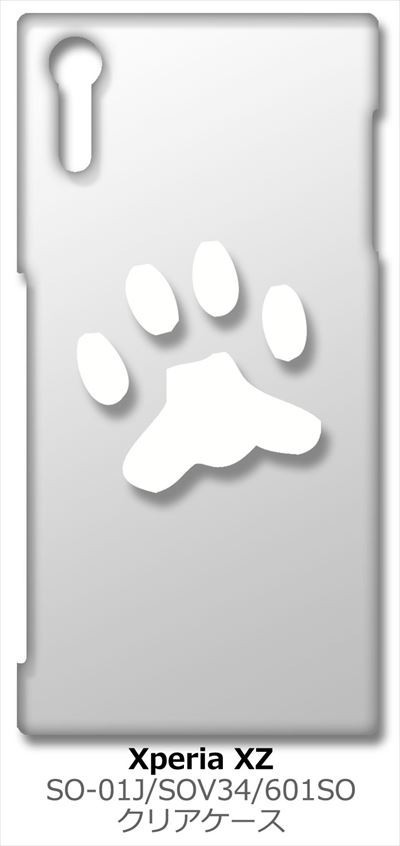 SO-01J/SOV34/601SO Xperia XZ クリア ハードケース 肉球 犬 猫 ネコ ワンポイント (ホワイト) カバー スマホケース