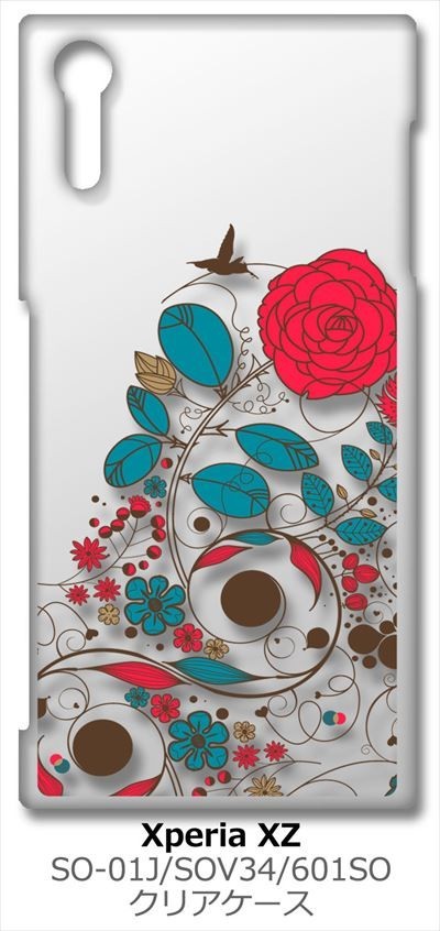 SO-01J/SOV34/601SO Xperia XZ クリア ハードケース ビンテージフラワー 薔薇 ローズ 花柄 スマホ ケース スマートフォン カバ