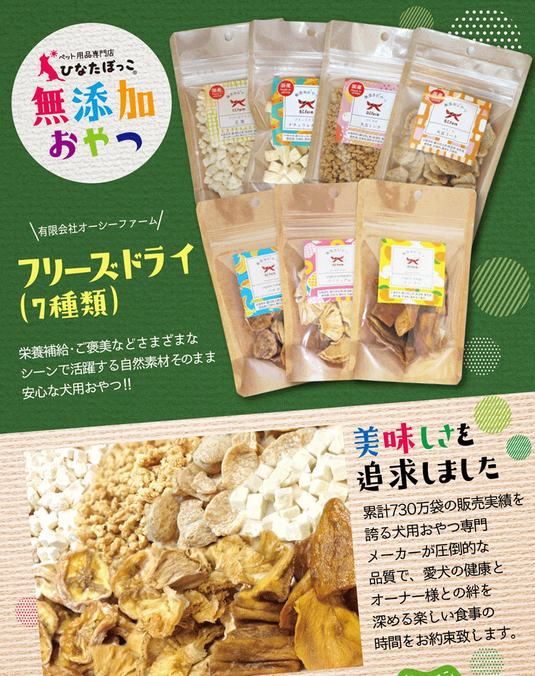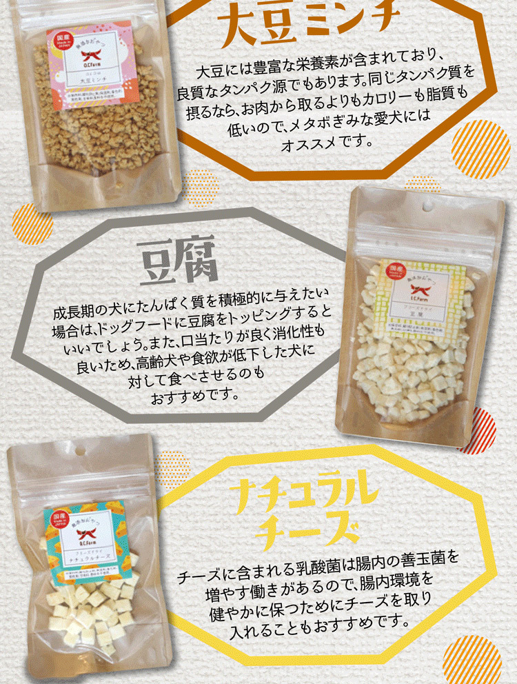 フリーズドライナチュラルチーズ 30g フリーズドライ豆腐 15g コロコロダイズミンチ 45g etc.(犬 おやつ オーシーファーム 無添加)