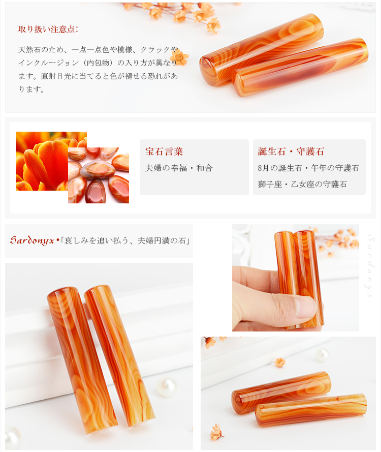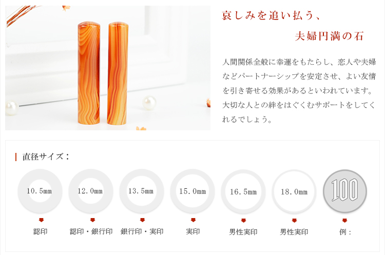 実印 水晶 銀行印 認印 実印 女性 ケース付き 水晶 実印 天然石 宝石 水晶はんこ 10年保証 紅縞瑪瑙12.0mm〜15.0mm ケース付き
