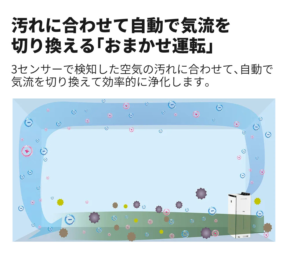 気になる飛沫粒子まで、独自の気流で効率よく空気浄化します。