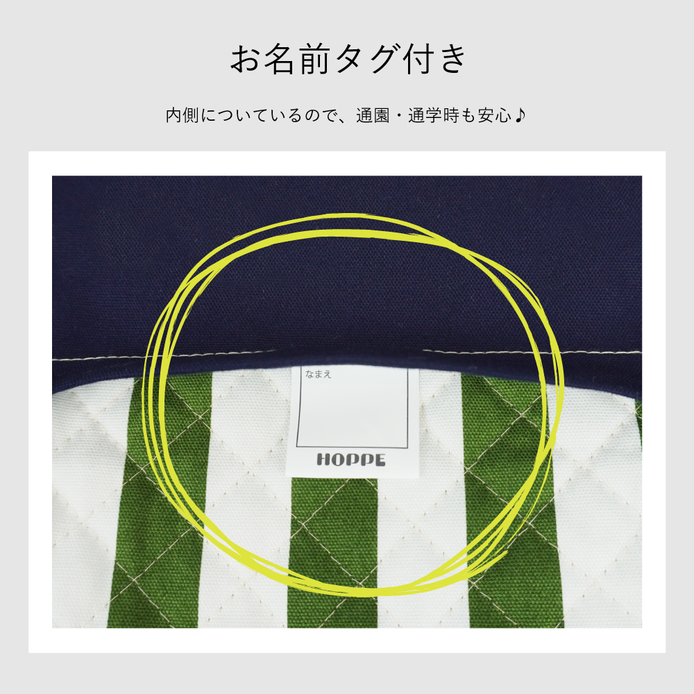 内側にお名前を記入出来るネームタグ付き。
