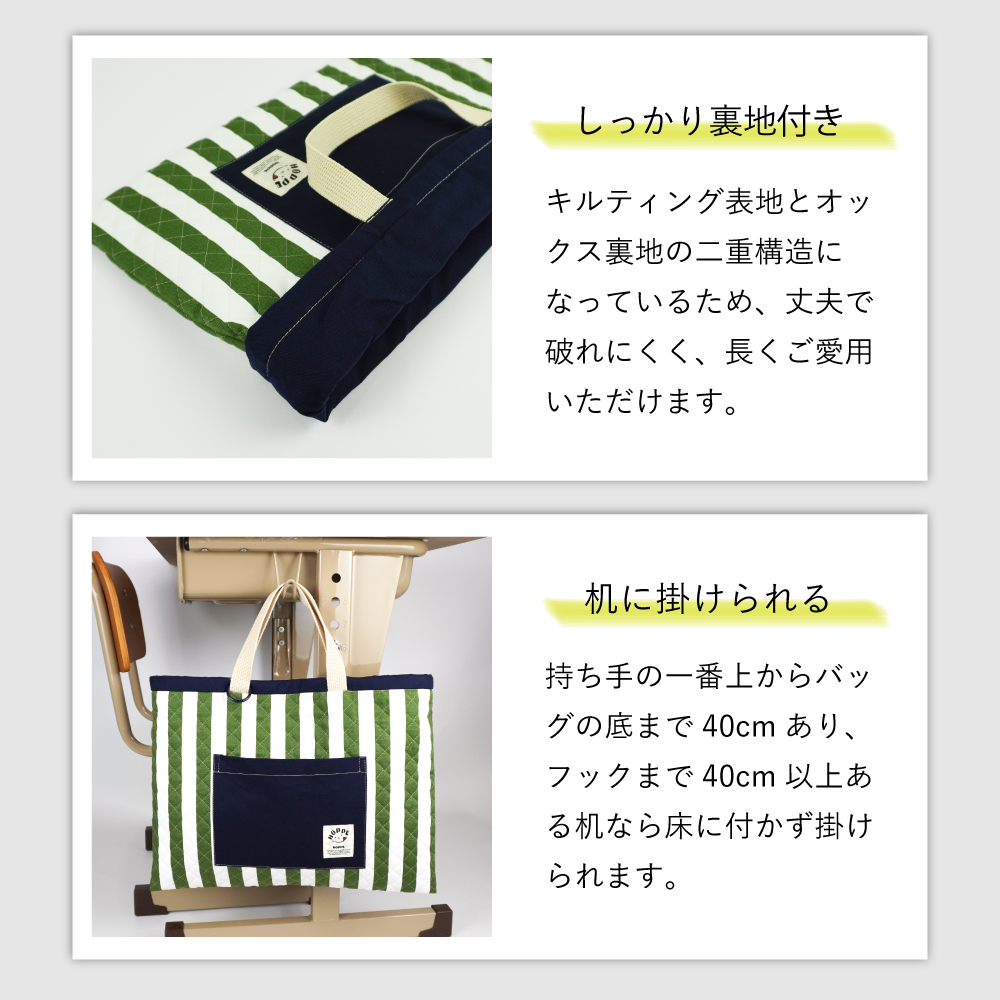 【しっかり裏地付き・机に掛けられる】