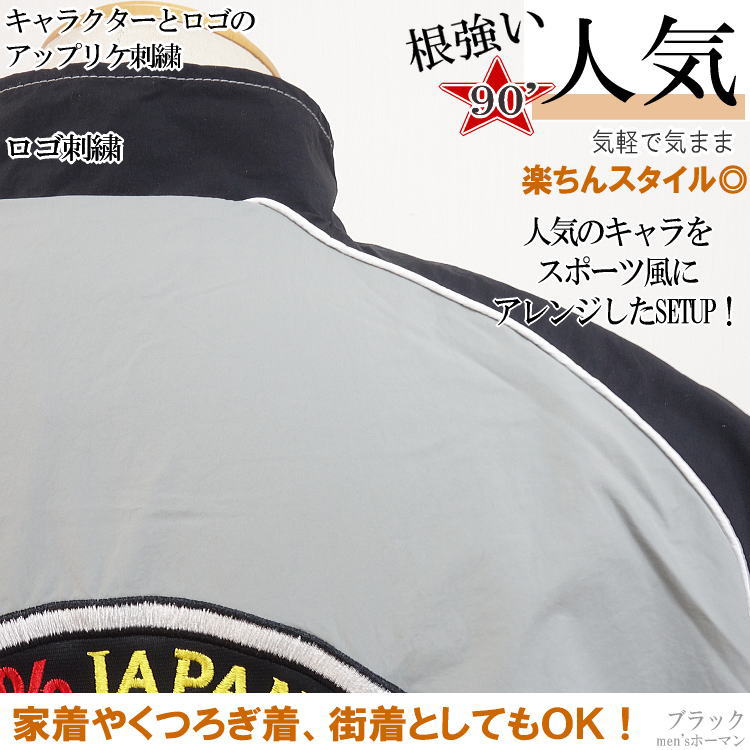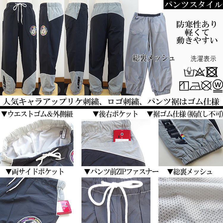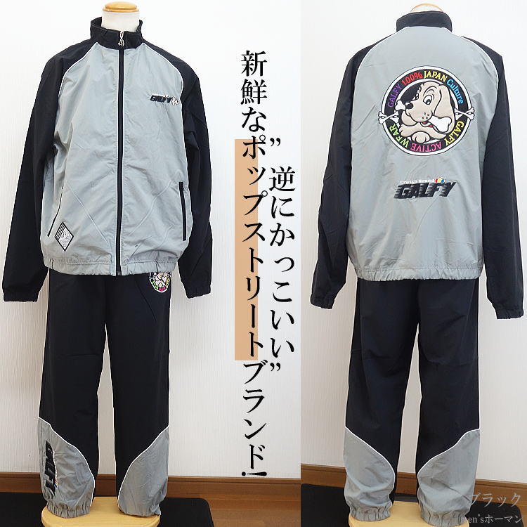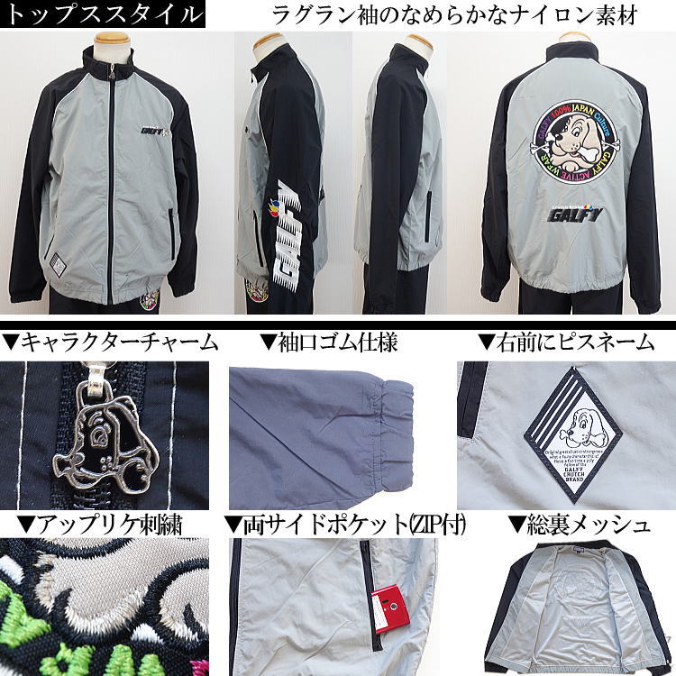 GALFY.E.L.Nガルフィー 人気キャラ刺繍 切替 ナイロン 裏メッシュ ラグラン 長袖長パンツ上下セットアップスーツ SETUP 黒 L中型犬/XL大型犬(L〜3L対応) 134017