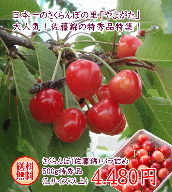 さくらんぼ 佐藤錦 バラ詰め 500g 特秀品 (Lサイズ以上)【送料無料(※沖縄県へのお届けの場合は別途送料が800円かかります)】【クール便配達】