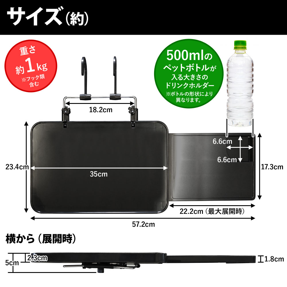 サイズ(約):メインのみ/横35×縦23.4×厚み5cm、サイドテーブル展開時横幅/57.2cm