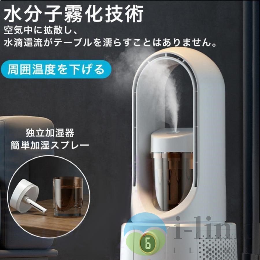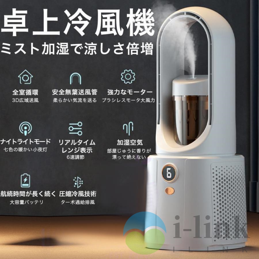 扇風機 サーキュレーター 羽なし dcモーター 小型 冷風機 携帯扇風機 加湿 冷風扇 卓上冷風機 手持ち 充電式 冷感 静音 子供 リビング 熱中症対策 2024 強風静音