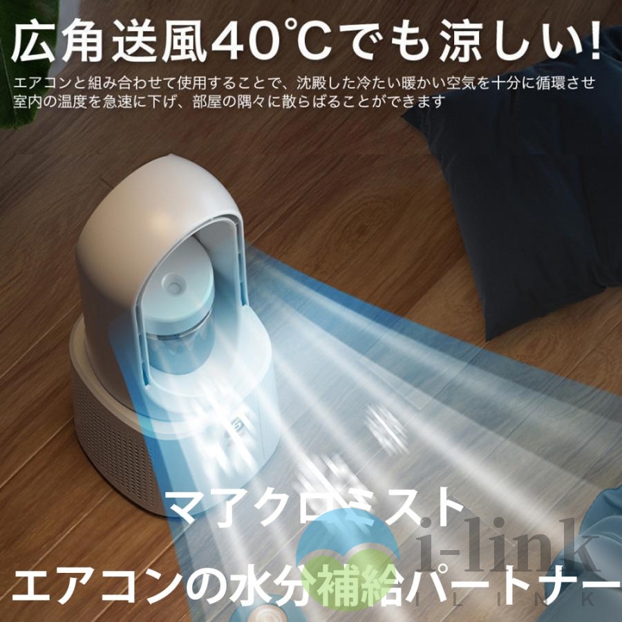 【急速降温】150MLタンク付き、氷霧を吹き出し、降温スピードを加速します。霧を欲しくない時は加湿機能をOFFします。