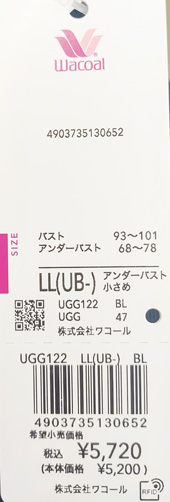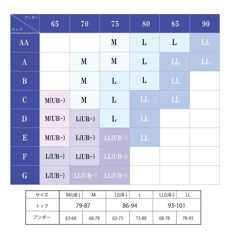 LL(UB-)サイズ (トップ93-101cm、アンダ68-78cm)、