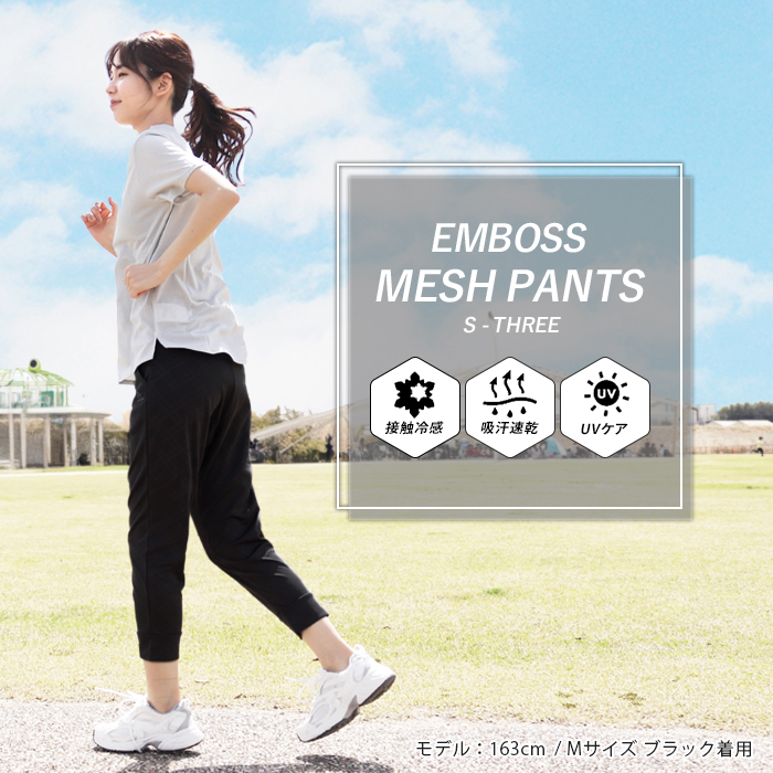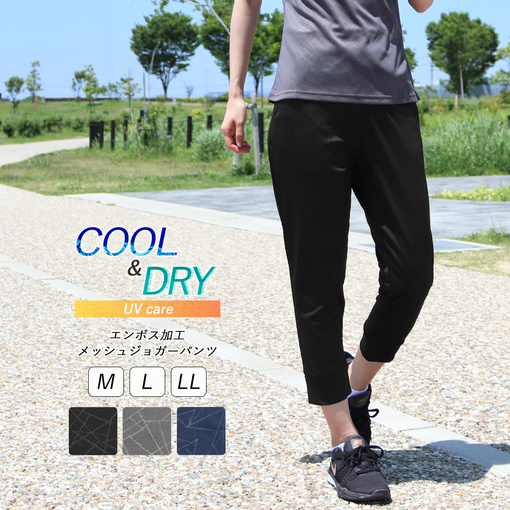 ひんやりさらさらで快適 エンボス加工の メッシュジョガーパンツ