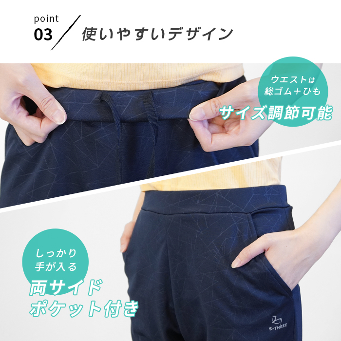 接触冷感・吸汗速乾・UVケア機能を備えた、春夏にぴったりの8分丈ジョガーパンツです。