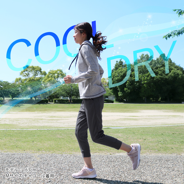 汗をかいてもベタつかないサラリとした着心地をキープし、暑い季節のジョギングやヨガ・フィットネスなど幅広いスポーツシーンで快適に着用いただけます。