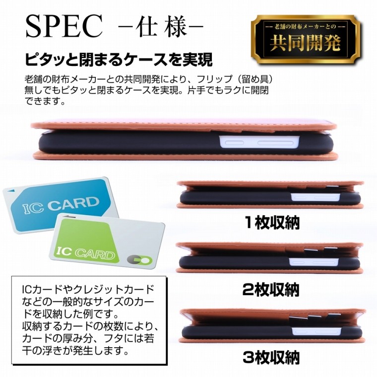 ・老舗の財布メーカーとの共同開発により、フリップ(留め具)無しでもピタッと閉まるケースを実現。 片手でもラクに開閉できます。