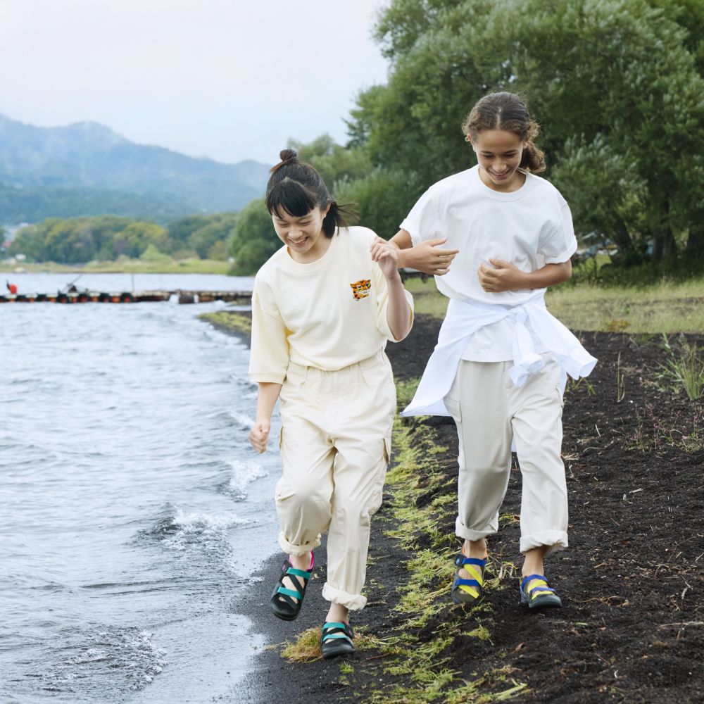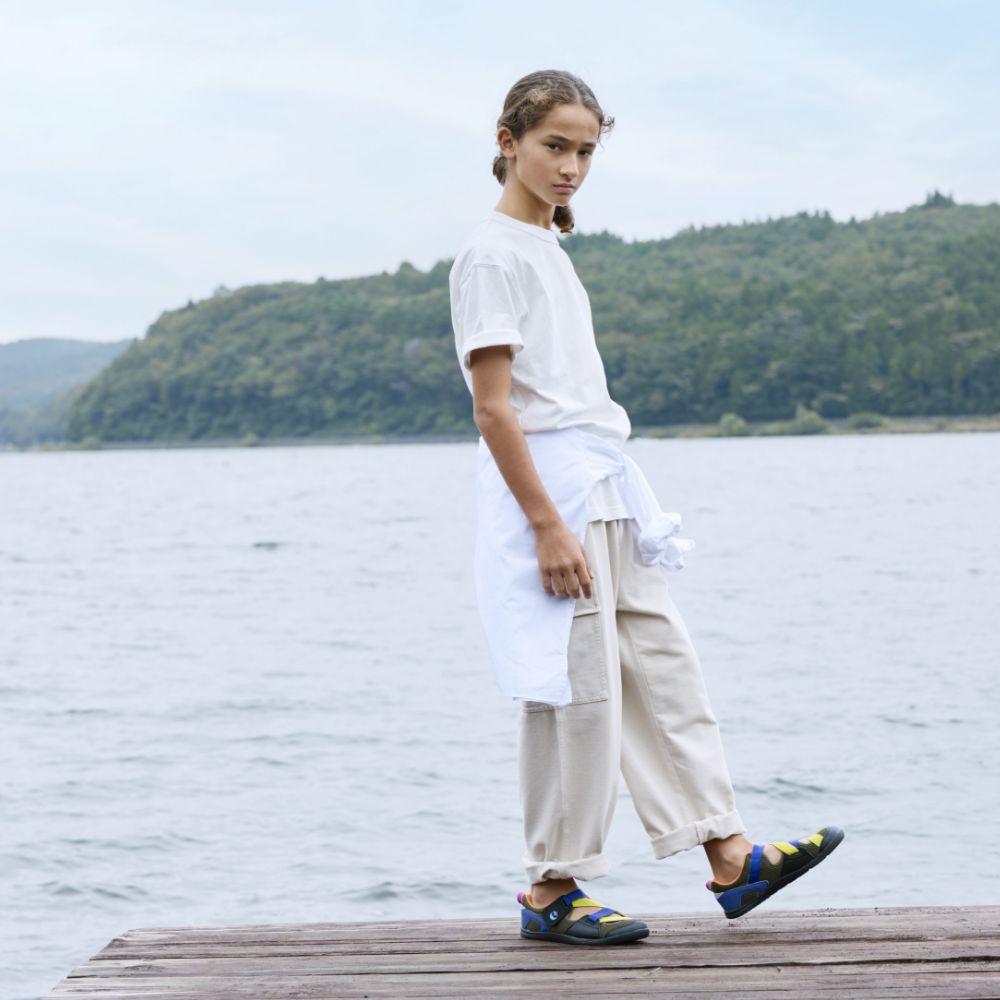 アウトドアスタイリスト・近澤一雅さんとの共同開発のシリーズ「+C」。キネティックベルトを採用したウォーターシューズが登場。リバーシブルカラーのZ字型のベルトが目を引く、アウトドアテイストのアイテムです。お揃いでキッズサイズもあります。おなじみの水抜きアウトソール&インソールを搭載し、春夏のお出かけに活躍する1足です。