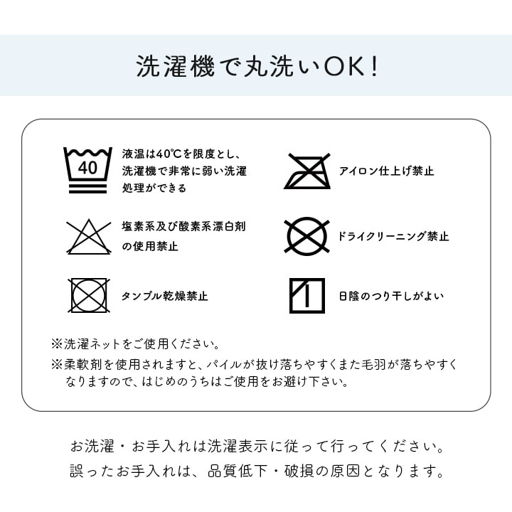 ■洗濯ネットに入れて洗濯機で洗えるのでいつでも清潔にお使いいただけます。