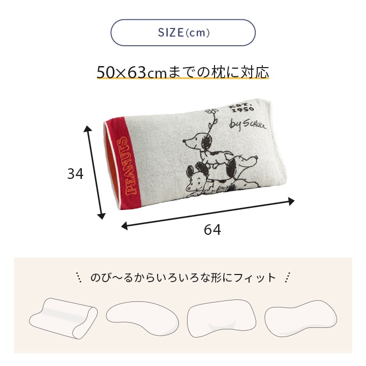 ■伸びる素材なので、多彩なサイズや形の枕にのびのびフィット。