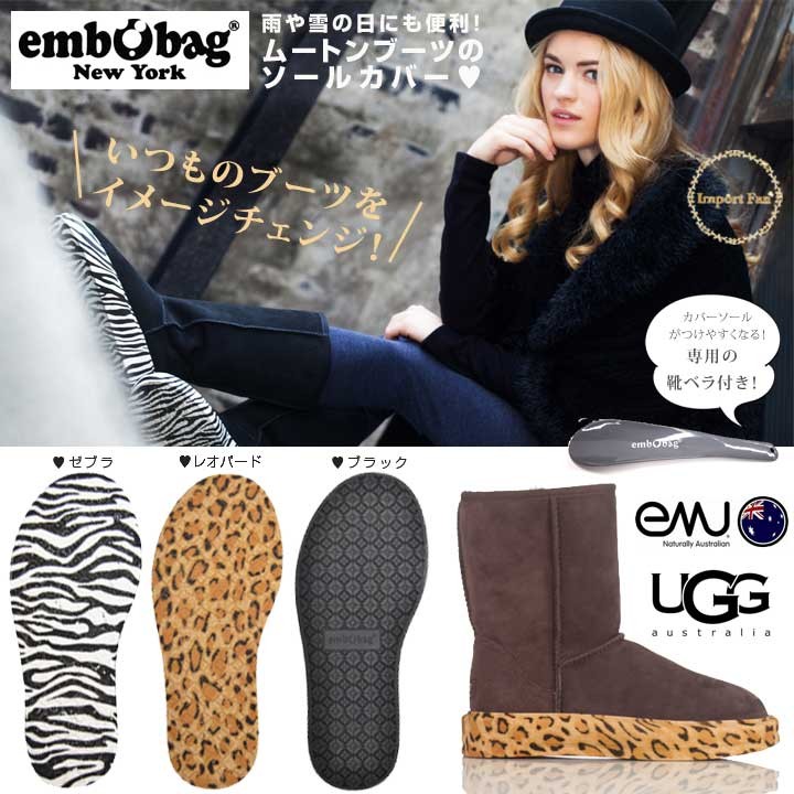 ※こちらはアメリカのembobagというメーカーがUGGやemuのムートンブーツ用に開発したソールカバーです。UGG Australiaやemuが製造したものではありません。純正品ではありませんが、あとづけでもとってもクオリティの高い仕上がり♪
